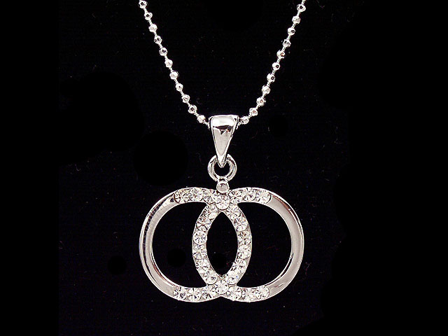 Silver w/Clear Austrian Crystal overlapping rings Necklace