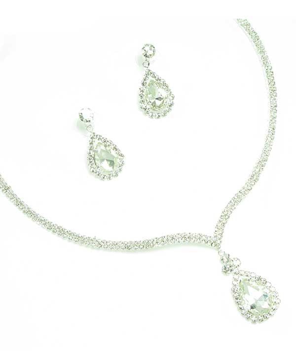 Rhinestone w/Teardrop Stone Necklace & Earring Set