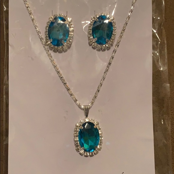 Silver w/Aqua Blue Oval Stone Necklace Set