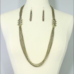 Gold Long Edgy Multi-Strand Chain Necklace Set