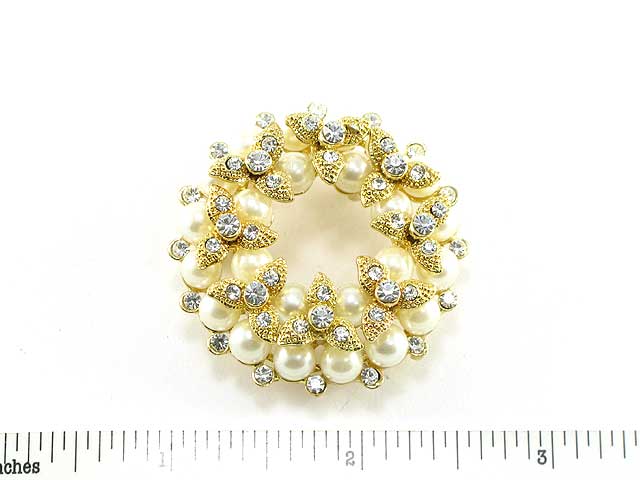 Gold w/Clear Austrian Crystal & Pearl Brooch/PIN