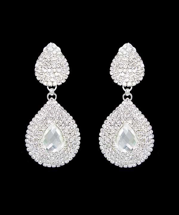 Silver w/Rhinestone w/Crystal Stone Clip-on Earrings 2.5" Length