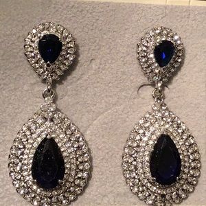 Silver Rhinestone Design w/Royale Blue Dangle Earrings