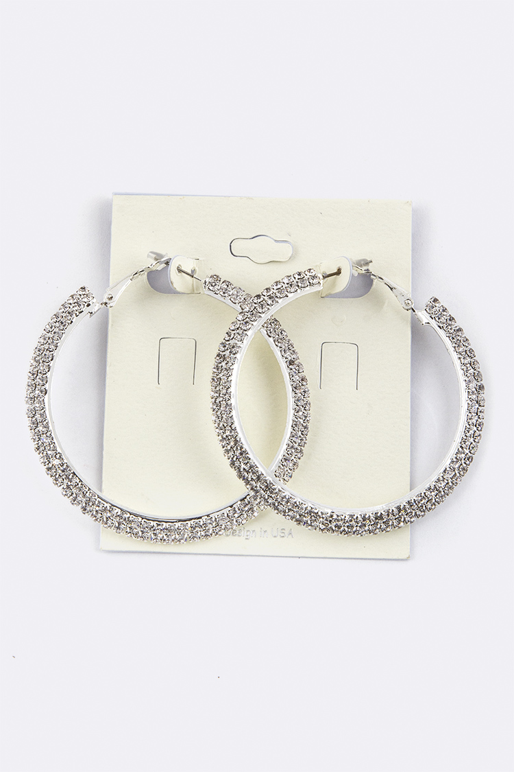 2 Rows Crystal Hoop Earrings