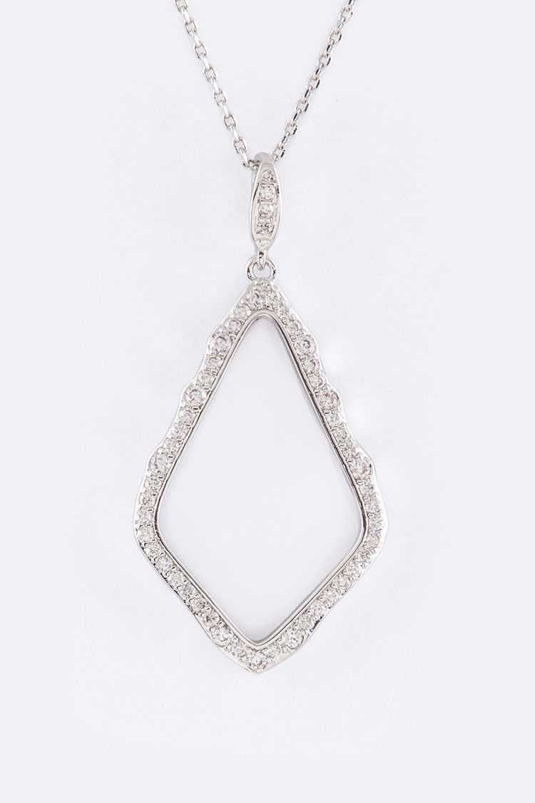 Silver w/Pave CZ Rhombus Pendant Necklace