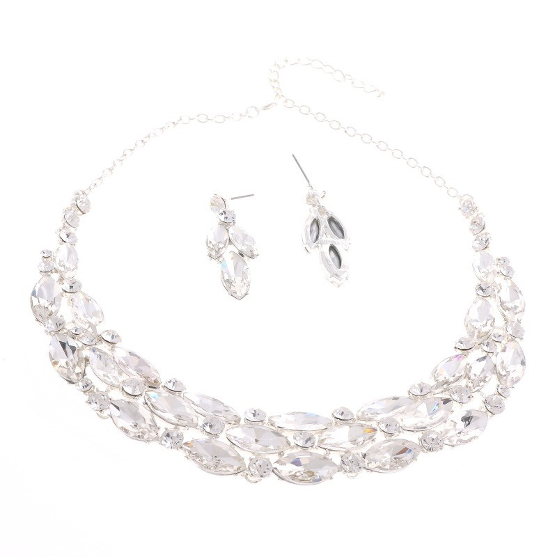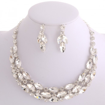 Silver Rhinestone w/Pearl Necklace & Earring Set