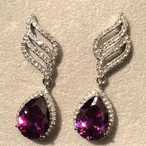 Silver w/Rhinestone & Purple Teardrop Earrings