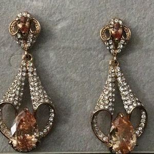 Gold w/Rhinestone Design Peach Chandelier Earrings