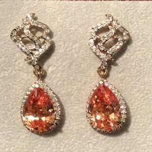 Gold w/Rhinestone & Peach Teardrop Earrings