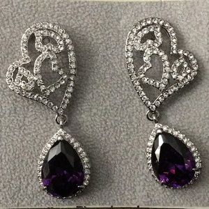 Silver w/Rhinestone Heart Design & Purple Teardrop Earrings
