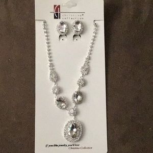 Silver w/Clear Color Stone Necklace & Earring Set