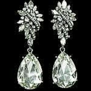 Silver w/Clear Crystal Teardrop Clip-on Earrings