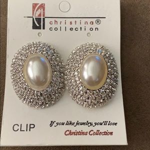 Silver w/Clear Pave Crystals & Pearl Clip-on Earrings