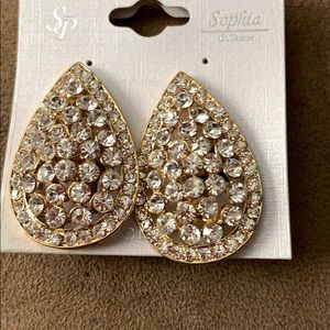 Gold w/Clear Stones Large Teardrop Clip-on Earring