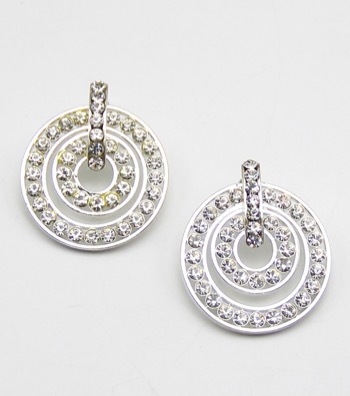 Silver w/Clear Rhinestone Bridal Hoop Earrings