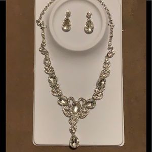 Silver Rhinestone w/Clear Tear Drop Necklace Set