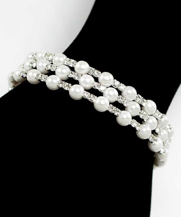 Silver w/Rhinestone & Pearl Stretch Bracelet