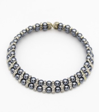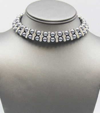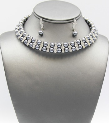 Gold w/Grey Multi Strand Pearl Choker Necklace Set
