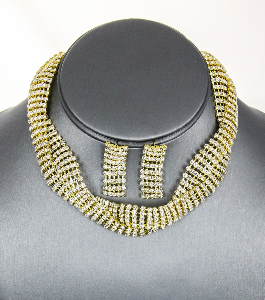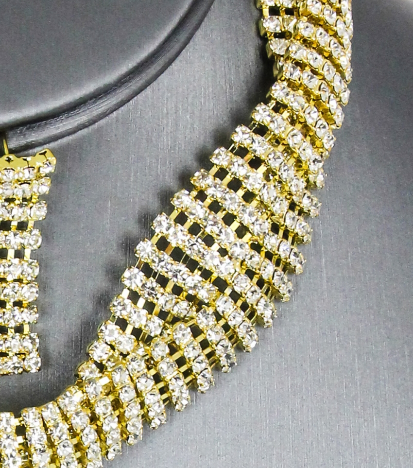 Silver Tone Clear Glass & Rhinestone Choker Set