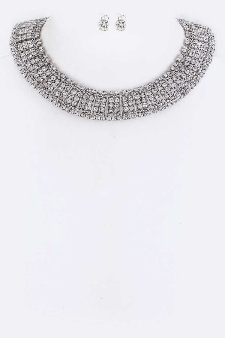 Silver w/Clear Layer Crystals Collar Necklace Set