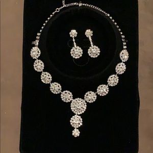 Silver w/Rhinestones Round Drop Necklace Set