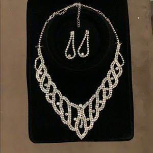 Rhinestone w/Teardrop Stone Necklace & Earring Set