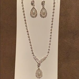Silver w/Black Crystal Stone Formal Pendant Necklace Set