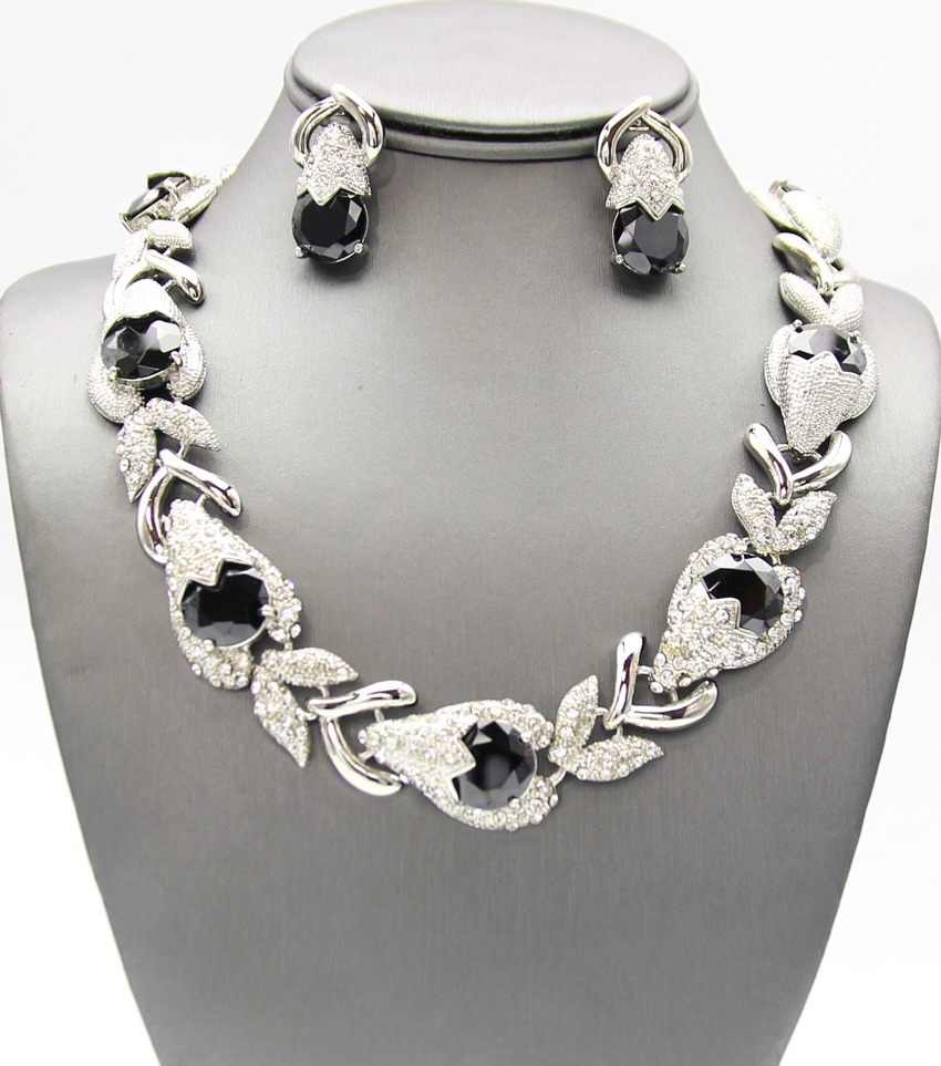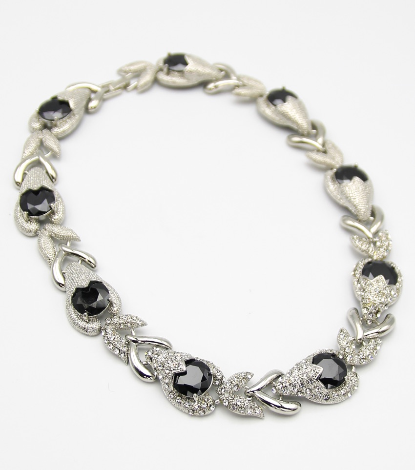 Silver w/Black Cubic Rhinestone Collar Necklace