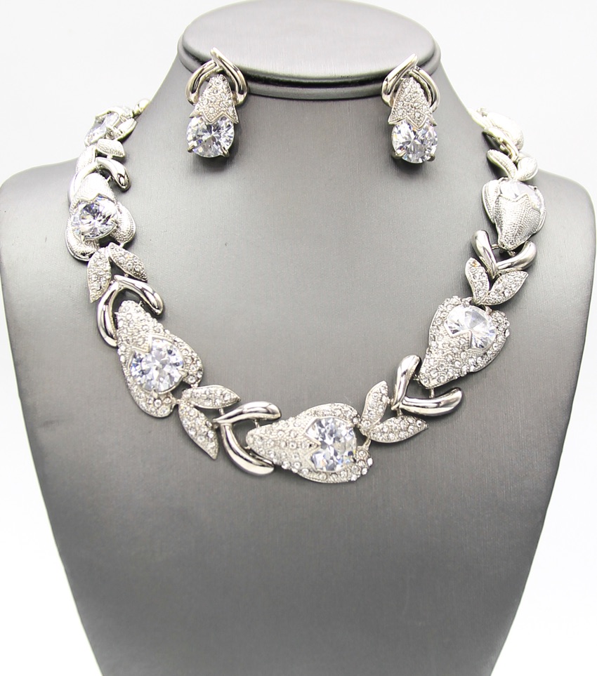 Necklace Length: 17" + 1 CZ Rhinestone Collar Statement 3/4" Wide 1/4" Earrings
