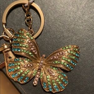 Gold w/Multi Color Rhinestones Butterfly Keychain