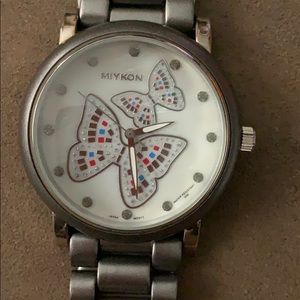 Gray Large Face Accents Butterfly Link Watch