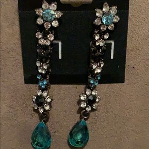 Gold w/Multi Color Rhinestone Dangle Earrings