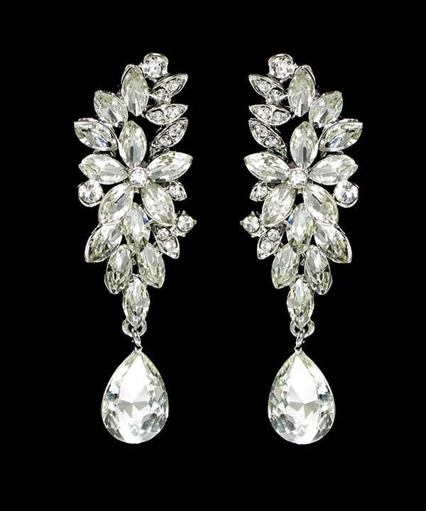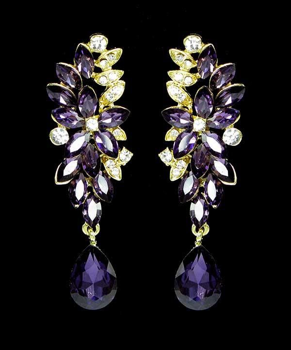 Silver w/Rhinestone Design & Purple Teardrop Earrings