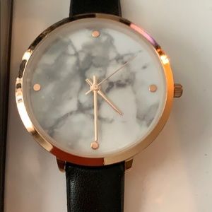 Gold w/Marble Print Black Strap Watch
