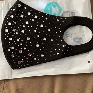 Black Fashion Mask w/Clear Crystals & Rhinestones Design