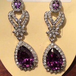 Silver w/Rhinestone Design w/Purple Teardrop Earrings