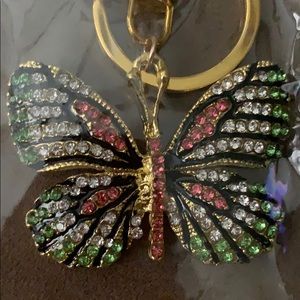 Gold w/Multi Color Rhinestones Butterfly Keychain