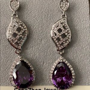 Silver w/Rhinestone Design & Purple Teardrop Earrings