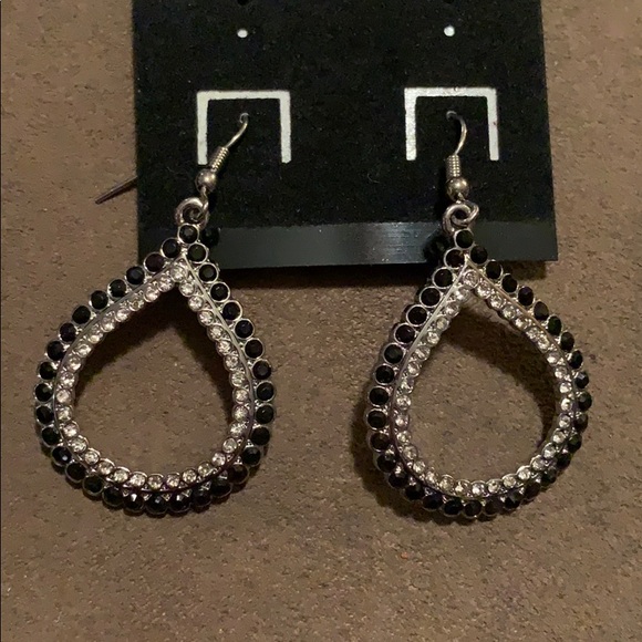 Silver w/Clear & Black Rhinestone Earrings