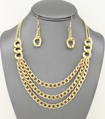 Gold Polished Chain Layered Necklace Set