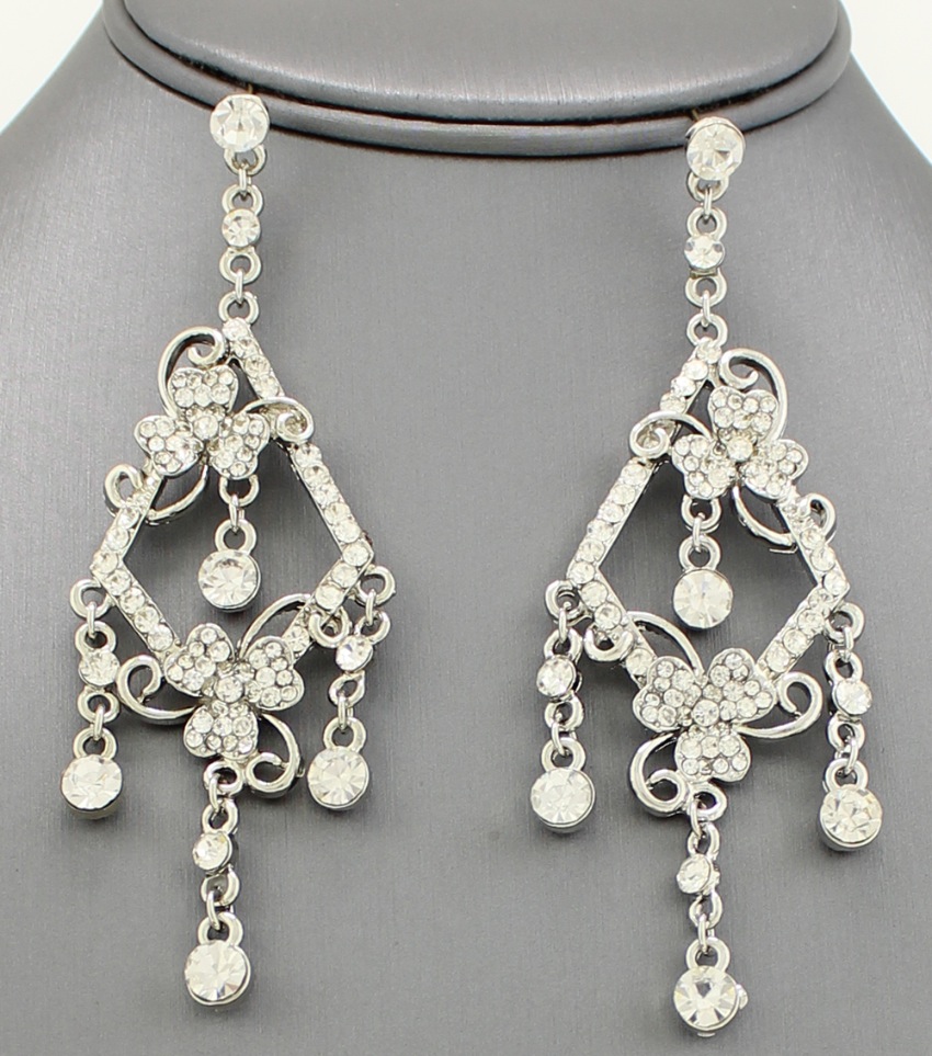 Silver Bridal Crystal Post Chandelier Earrings