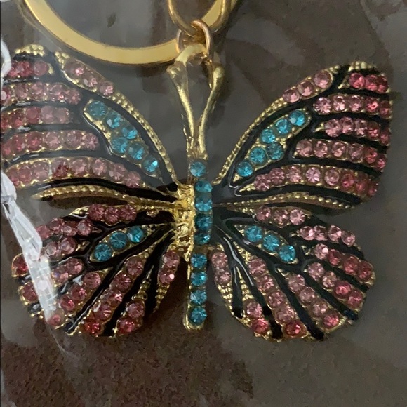 Gold w/Blue & Pink Rhinestones Butterfly Keychain