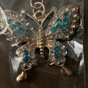 Gold w/Blue & Clear Rhinestones Butterfly Keychain